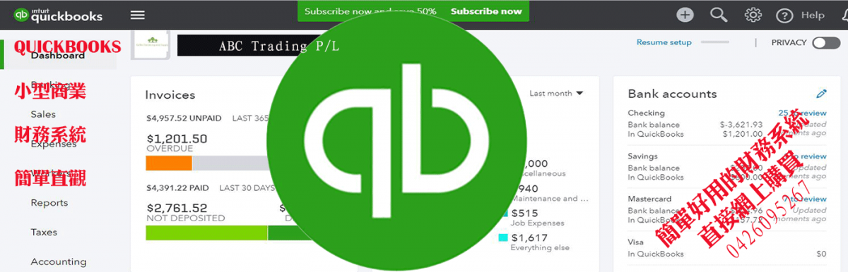 Quickbooks基于云端寄存,多设备接入,能够满足一般小生意的开票、记账用途。